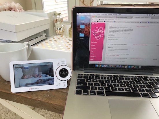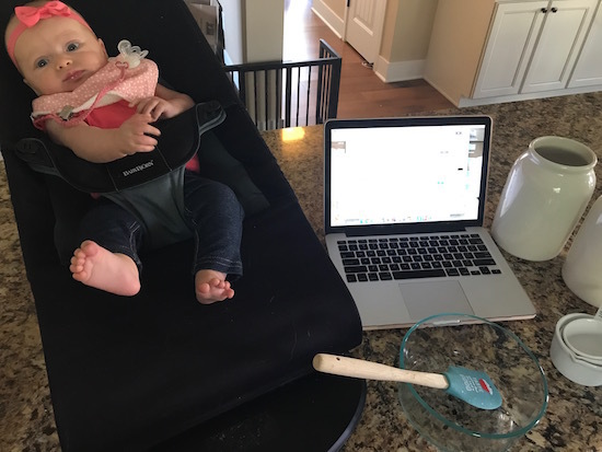 After lunch, and feeding the babe at 1 pm, we get ready to do some work! I put her in the baby carrier or Sean puts her in his office in the rock and play as I create recipes and Sean does design work for the day!