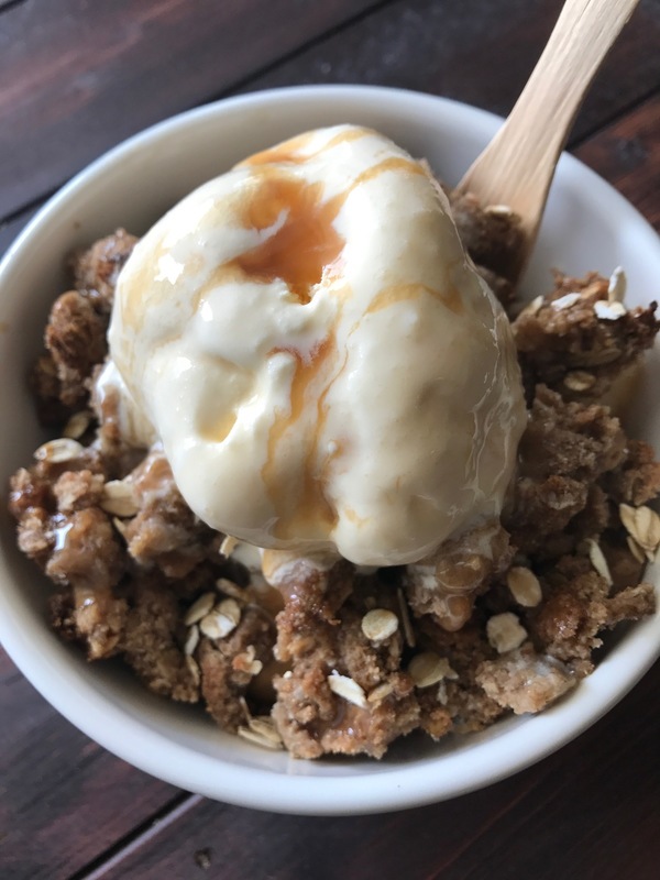 We then enjoy the fruits of my labor if I created a clean eating dessert that day! ;) Today we had my Clean Eating Apple Crumble with Halo Top vanilla ice cream! (Recipe coming soon!)