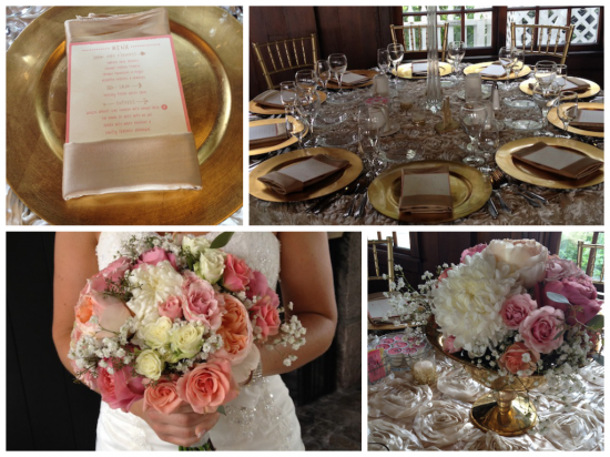 The ceremony and reception took place at Walden Woods in Hartland Michigan. The ceremony was outdoors by the lake, and the reception was indoors. Emily had gold, ivory, and corals for her wedding colors!