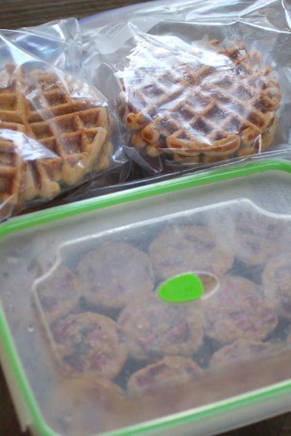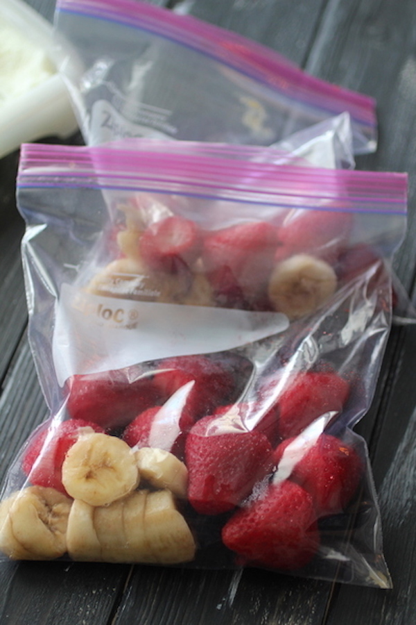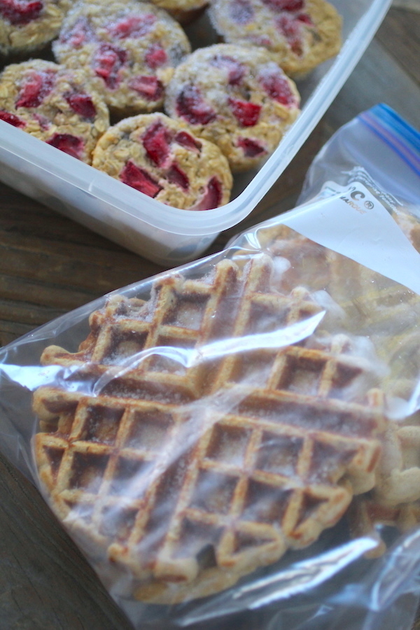 BREAKFAST: For breakfast I made my Strawberry Baked Oatmeal Cups, Clean Eating Freezer Waffles and Protein Pancakes, Make Ahead Smoothie Freezer Packs, and Breakfast Burritos (recipe coming soon). I plan to pull the oatmeal cups, waffles, pancakes, and breakfast burritos out as I need them and heat them in the microwave for about one minute, or until warm. (I may also toast the waffles). For the smoothie packs, you literally just dump the pack into a blender along with some almond milk, and blend!