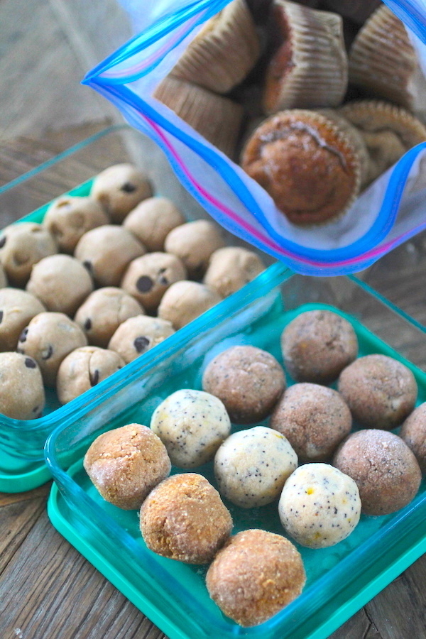 SNACKS: For snacks I made a few grab and go options such as my No Bake Cookie Dough Balls, Banana Bread Protein Balls, Peanut Butter Cookie Balls, and Lemon Poppyseed No Bake Balls (recipe coming soon). I also made my Banana Bread Protein Muffins. For all of these snacks, I plan to pull them out as I need them and eat them partially frozen, (the balls are actually super yummy that way), microwave them for 20-30 seconds, or let them thaw for a bit.