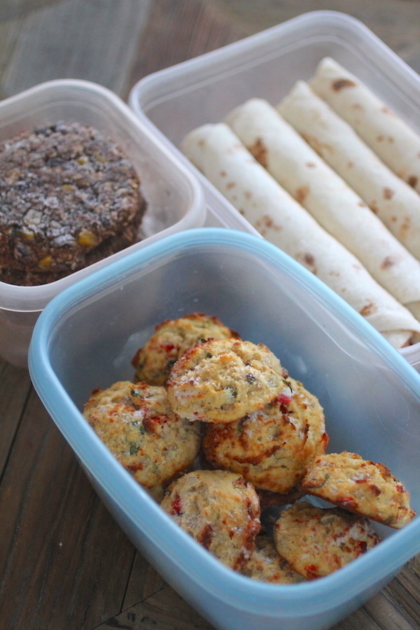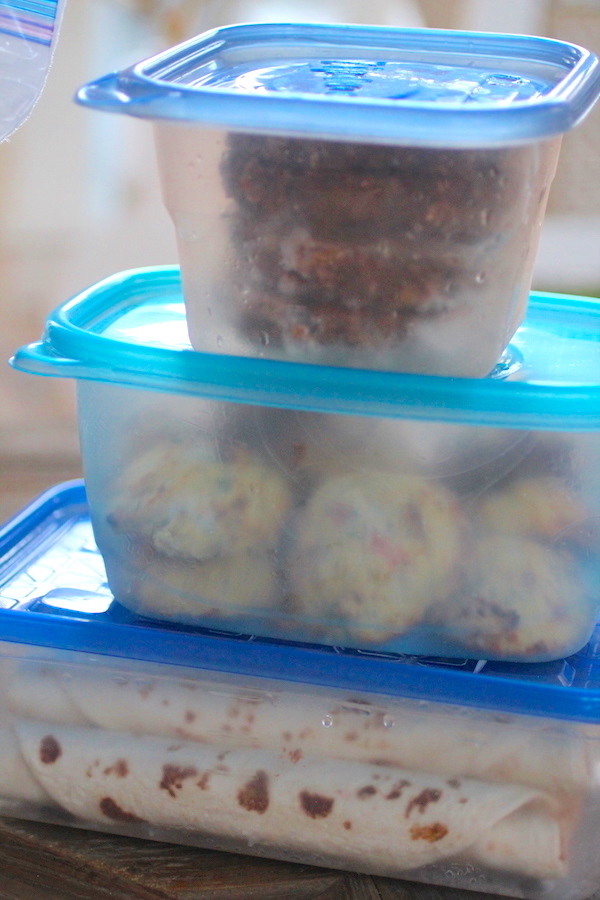 LUNCHES: For lunches I made one of my husbands favorites, my Easy Cheesy Burritos, Salmon Cakes, and Black Bean Burgers (recipes coming soon). I also made some Chicken Fajita Cauliflower Rice Bowls, which I frozen individually for easy thawing (recipe coming soon). I plan to pull these out individually as needed as well and heat in the microwave for about 1 minute. I will most likely serve the burgers and salmon cakes with a side dish such as veggies, avocado, or with a salad, and the burritos with cheese sprinkled on top. I will serve the chicken fajita bowls with salsa and possibly some avocado or guacamole.