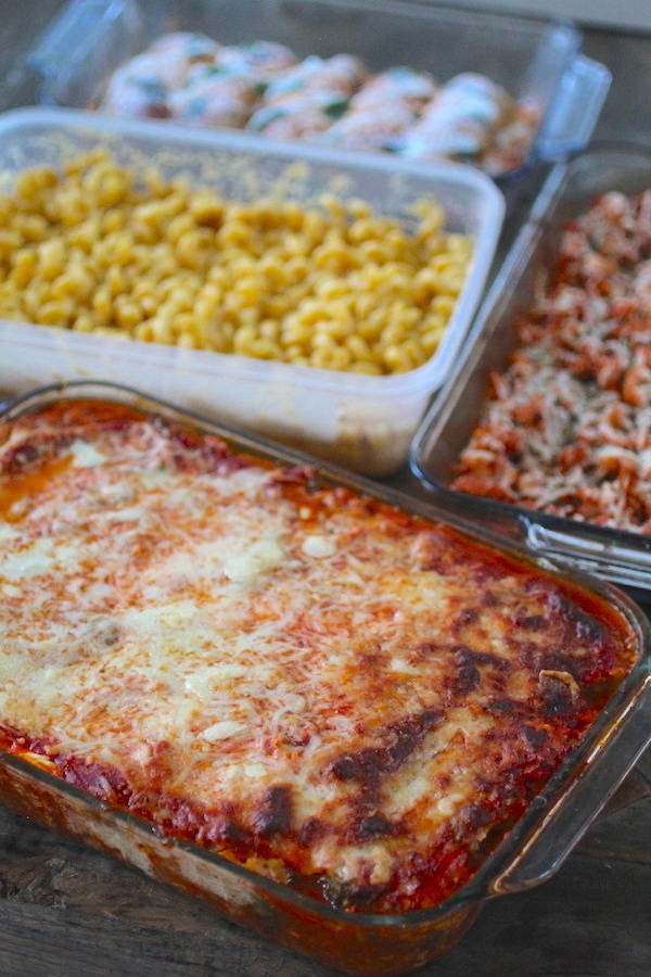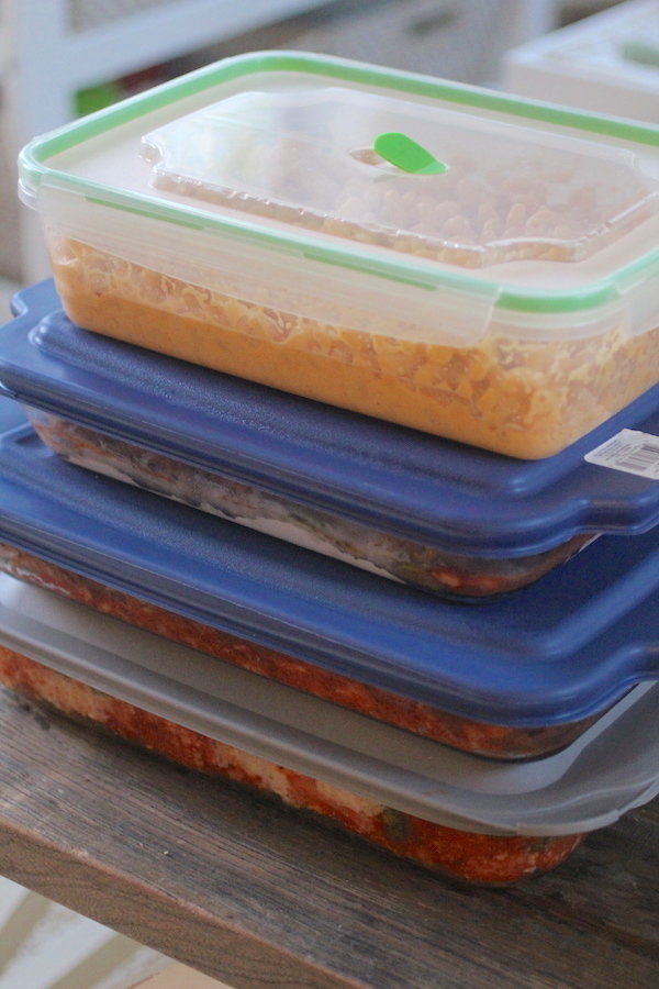 3. Freeze and Store Meals: As far as freezing and storing meals, I plan to pull things out in batches as I need them, and enjoy them as leftovers through the week, so I personally packed things into big casserole dishes, etc., although you could also pack things individually if you prefer to have one single serving that is fresh each time you enjoy a meal.