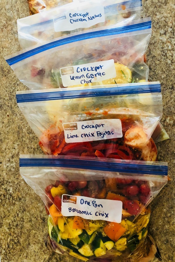 6. Store already-prepped meals ready to cook. Traditionally, I have set aside some time on my Sunday afternoons to prepare and cook all of our meals for the week which are then portioned into individual plastic containers for the ultimate in grab-and-go convenience. Alternately, after prepping your meats/proteins, grains/starches and produce, you can then portion/measure out whole recipes complete with any canned goods, liquids and seasonings into food storage bags or containers to make weeknight cooking a snap. This tactic is especially suited to crockpot and one-pan/one-dish recipes where all ingredients are combined from the start and which may otherwise require too much advance prep to be truly convenient for busy weekday mornings. For example, One Pan Roasted Balsamic Chicken & Vegetables is a favorite in our household and can make for a quick weeknight dinner so long as the chicken, veggies and seasonings are prepped in this way beforehand. This tactic can also be used for other DD recipes as well but be sure to keep the cooking process in mind and keep any ingredients separate that need to be added at different points in the cooking process vs all together.