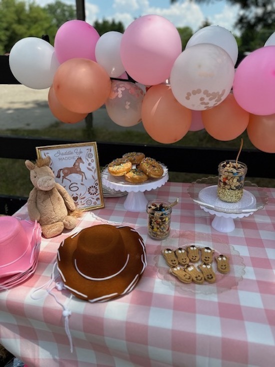 The party was mid-day so we had a few snacks and treats for the kids. I bought some donuts, trail mix, cupcakes, and Maddie and I made some horse cookies!