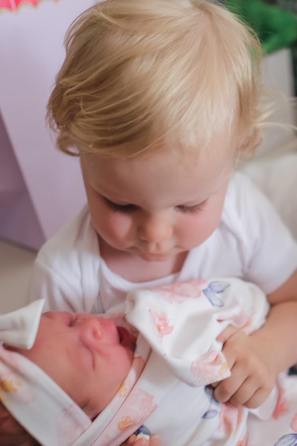 There was nothing sweeter than Gabriel (1 1/2 years) meeting her for the first time! He played with her fingers, said "baby", kissed her on the forehead, and he even stole her pacifier which had us all cracking up!