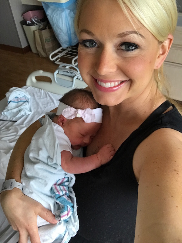 The next morning we were discharged from the hospital, and Madeline and I were given a perfect bill of health! We dressed her in her very first outfit, which was the onesie I used to tell Sean I was pregnant with her!