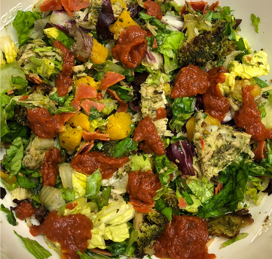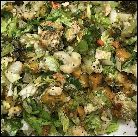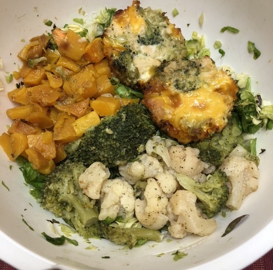 Sometimes I just make a bunch of different roasted veggies with seasonings and a meat and don't follow a recipe. I also like to use recipes that can be multi-purposed. For example, the Mini Cheesy Chicken Broccoli Casseroles are yummy as a main dish, but I also like to use them as a salad topper. I will heat them up along with some other roasted veggies like butternut squash cubes, ranch cauliflower and broccoli, and anything else I have leftover to use up, and then toss the warmed toppings over the cold salad mix. The temperature contrast is amazing! You can also pack it up to take to work. Just put everything that needs to be re-heated in the microwave in a portable container and take your salad greens separate. Heat the toppings and then crumble them up over the lettuce you have dumped in a big mixing bowl. Toss in your favorite dressing and enjoy!
