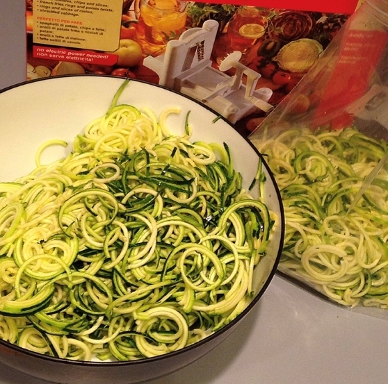 If I have any veggies to cook on the stove, like zucchini or squash noodles, I do that now too!