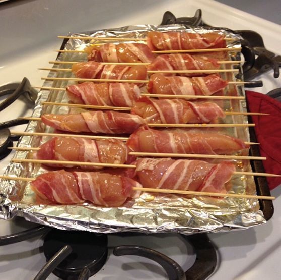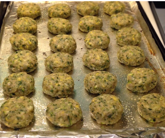 Depending on my protein, I start preparing and cooking it once I have some veggies going as mentioned above. If it needs to go in the oven, then I'll save it for after the veggies—again, remember to turn your oven down! Things like the Honey Bacon Wrapped Chicken Tenders or Guacamole Turkey Burgers (also good as meatballs, which is shown below) are easy to prep while roasting veggies.