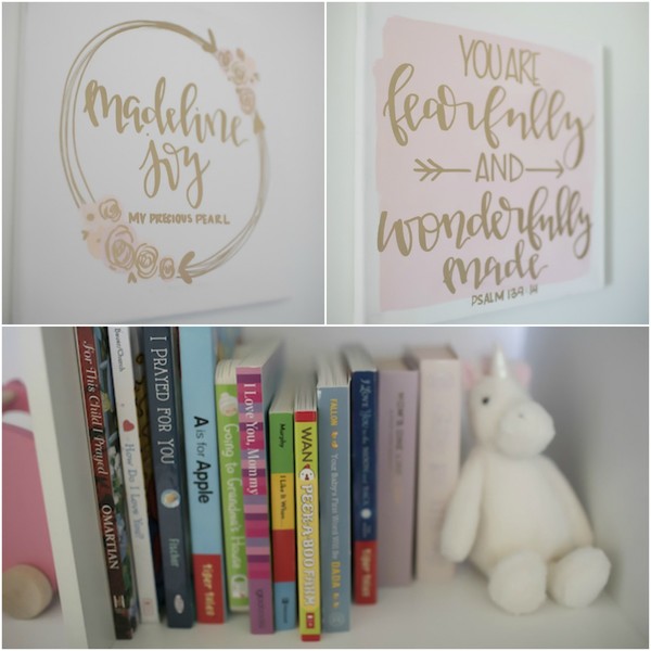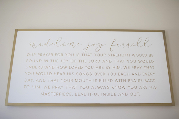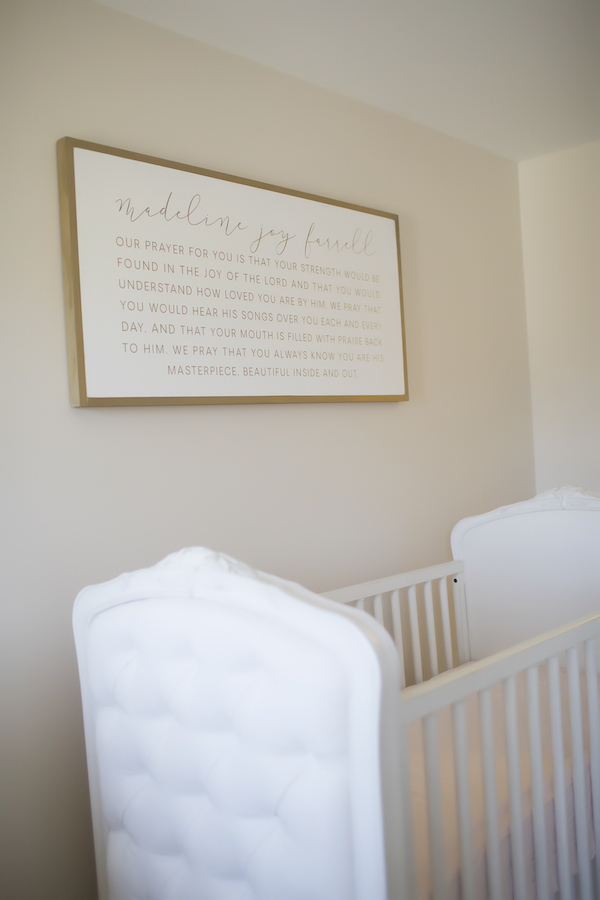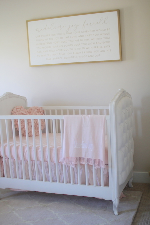 When we started putting together the nursery, I knew I wanted it to be blush pink, ivory, with touches of gold. I also knew I wanted to have a custom sign above her crib that would be really meaningful.