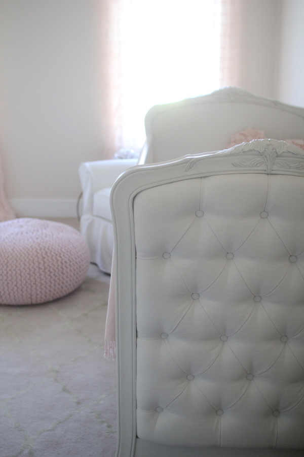 We finished off the room with a blush pink rug with touches of gold, also from Restoration Hardware Baby.