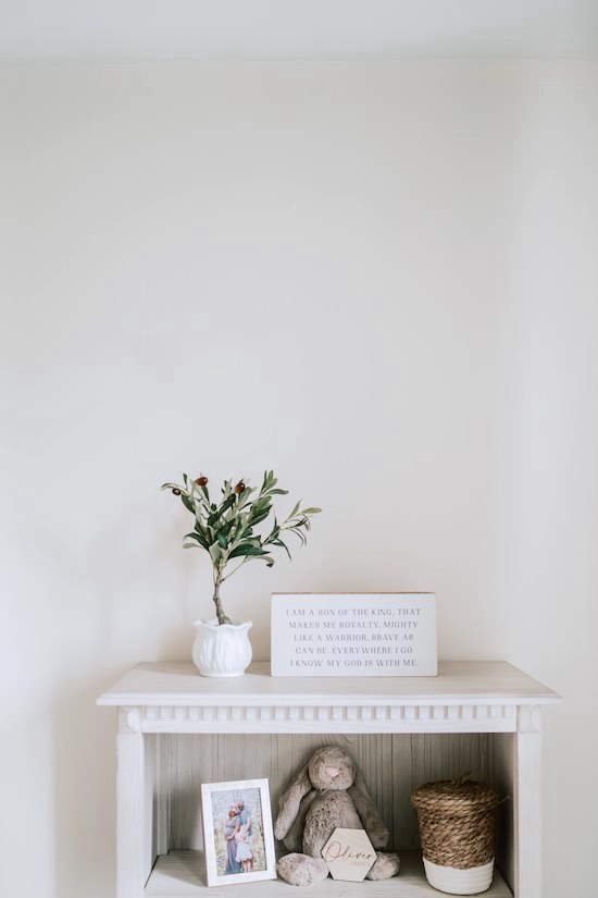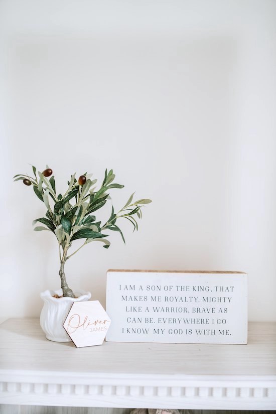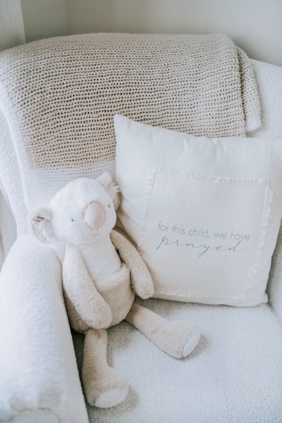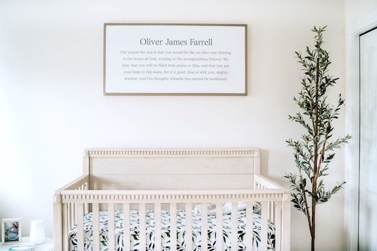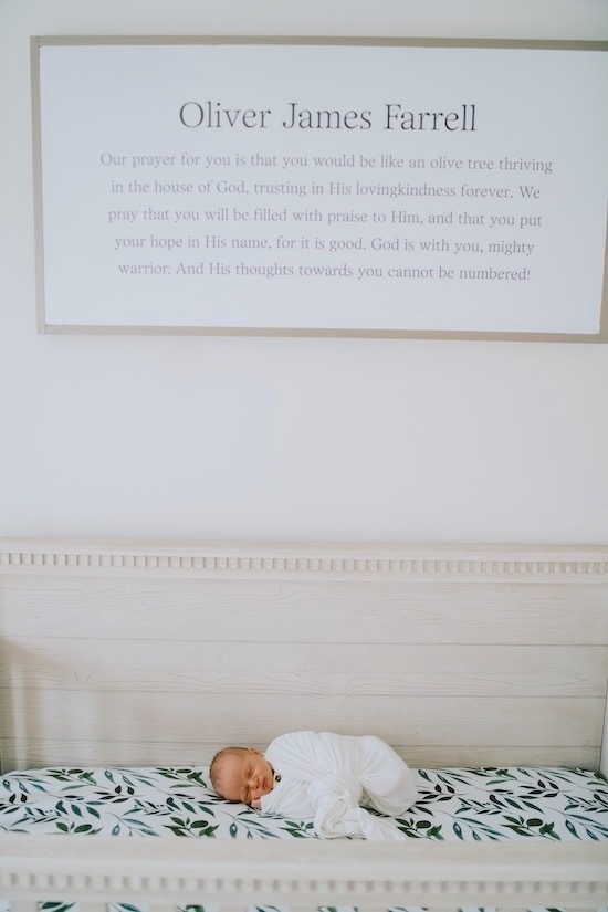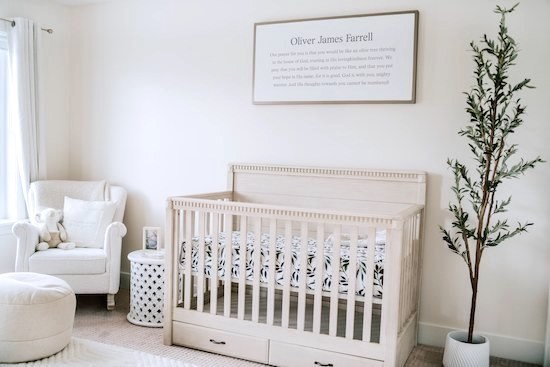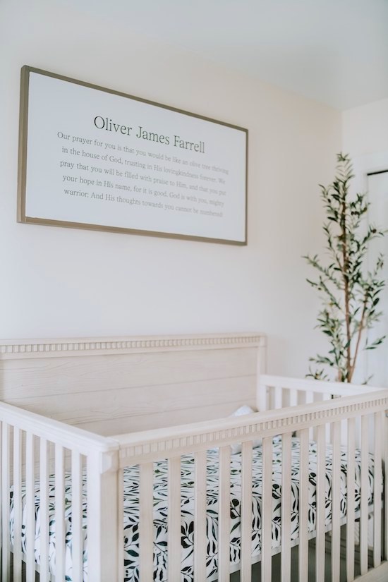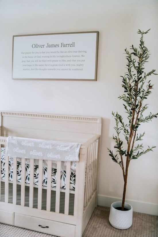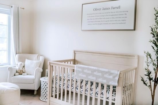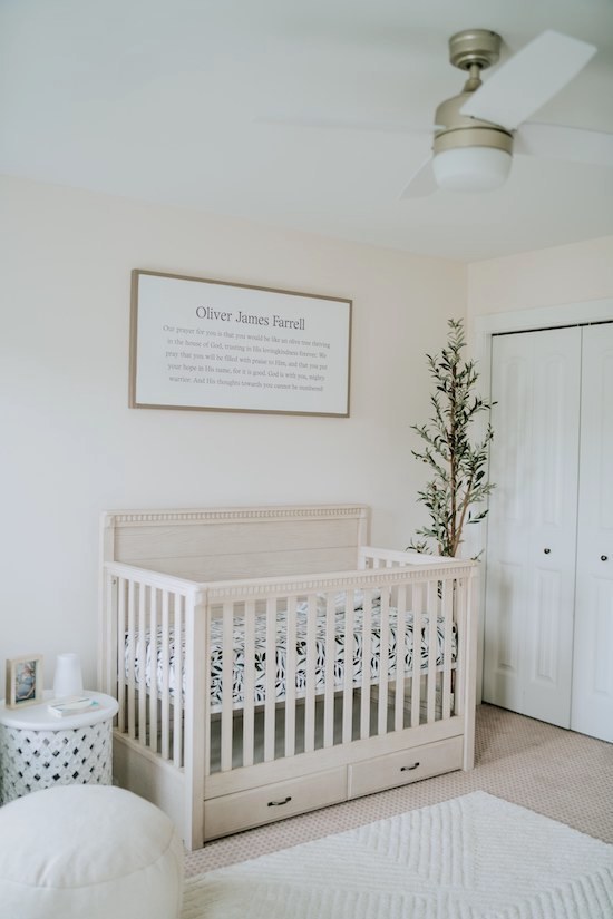 Oliver’s Nursery has become one of my favorite rooms in our house! Our goal was to make it a place of peace, and I truly feel it has become just that! From the moment we brought him home from the hospital we have spent countless hours singing to him, rocking him, and reading to him in his room, and have already made precious memories there! I'm excited to share it with you all today! All the furniture and accessories are from Pottery Barn Kids (Rory, Quinn, and Stella collection), Amazon, and West Elm Kids. 🕊