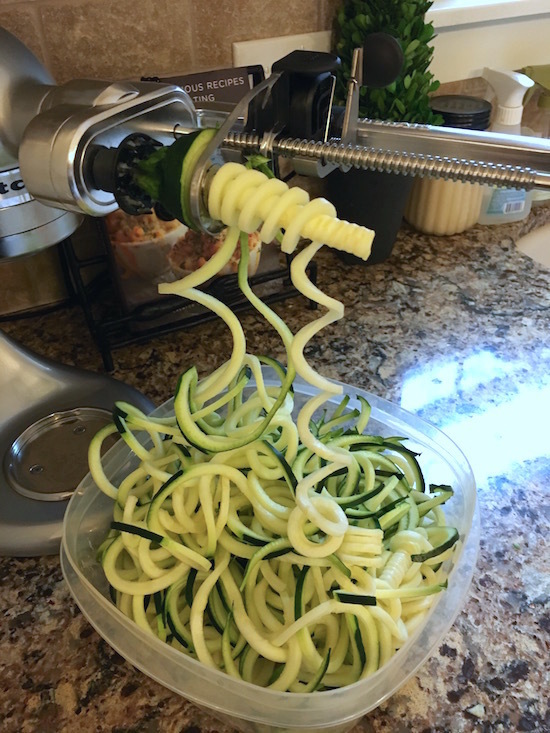 Another personal fave that I just recently discovered is this Kitchen Aid Spiralizer! I got it from Crate and Barrell, but I also found them on Amazon. They are more pricey than the hand crank ones, but if you use this gadget often enough, it might just be worth the investment for you! So much easier, and quicker!